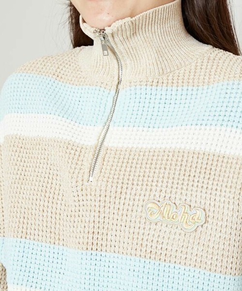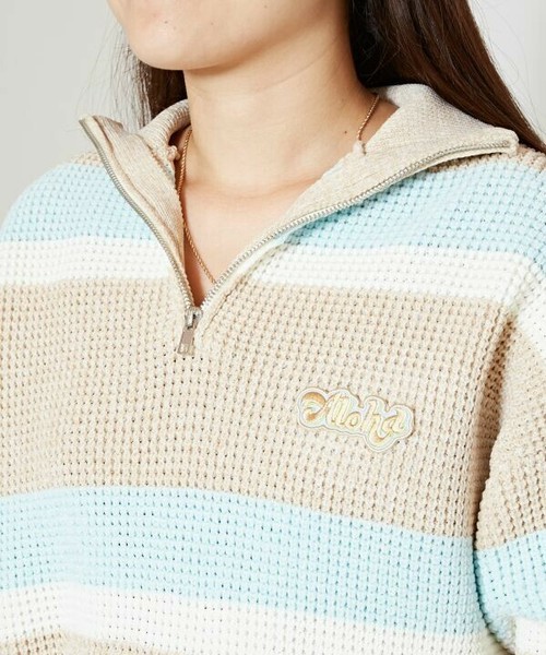 | This half-zip top is made of a soft and comfortable border knit in colors that recall the retro streets of HAWAII, and features an ALOHA patch. kahiko ROOTS of HAWAI'I From Hawaii's glamorous resort culture to its historical roots. We will deliver the deep charm of Hawaii that Japanese people love. *Each item is handmade by craftsmen. Therefore, the shape and color may vary slightly. Please understand this in advance. Amina Collection Co. |