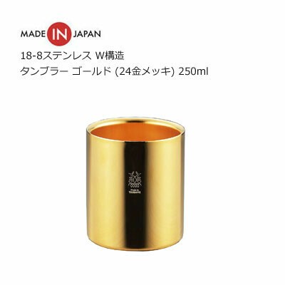 新潟県燕商工会議所認証、W構造オール24金メッキ仕上げタンブラー