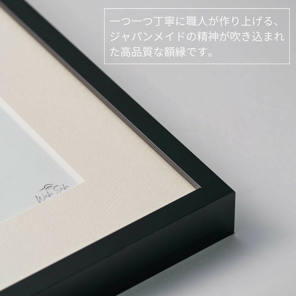 *About Posters A4 size: 210 x 297mm Actual size including mat: 288 x 378mm *All art posters come with a mat (mount). Color: White (Black is also available. Please request at the time of purchase.) A mat is a 2mm-thick, paper backing for a picture frame. The matting that surrounds the art poster between the poster and the matting makes the work look much better and prevents direct contact between the work and the acrylic, The matting is placed between the artwork and the acrylic to prevent direct contact between the artwork and the acrylic. Material: DX white core, 100% virgin pulp/PH7* neutral paper (2mm thick) *About Frames Color:Black Wooden frame size (external dimensions):Taishi size 297 x 387 x 24 (thickness) mm The wooden frame is simple and beautifully finished, and goes well with any room. |