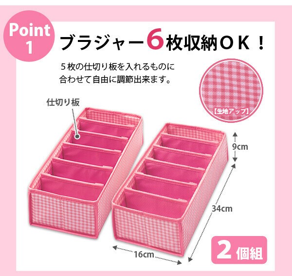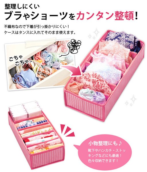 | Store bras and panties neatly in the wardrobe! Handkerchiefs and tissues can also be organized and stored neatly with freely adjustable dividers. Storage case, wardrobe, storage, divider case, small organizer box, cute lingerie storage, panties, underwear, pink check |