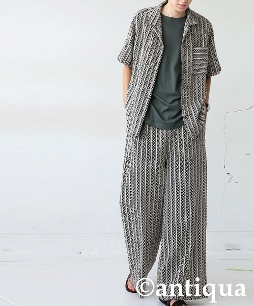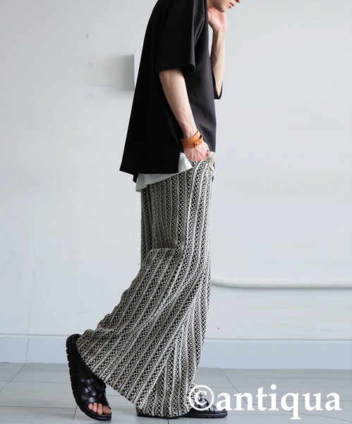 [antiqua] Full-Length Pant Ladies fashion Pleated Wide Pants Unisex Men's