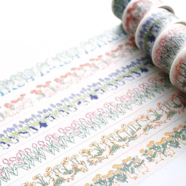 | A gorgeous masking tape with an endless field of flowers. The wide width makes it perfect for decorating notebooks and notebooks, wrapping, and more. PETIT ET GRAND A stationery series of tiny animals exploring a flower garden. |