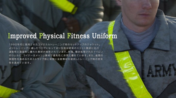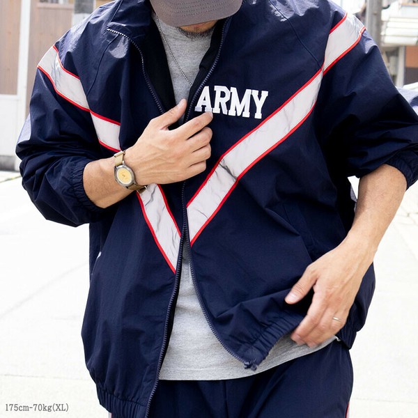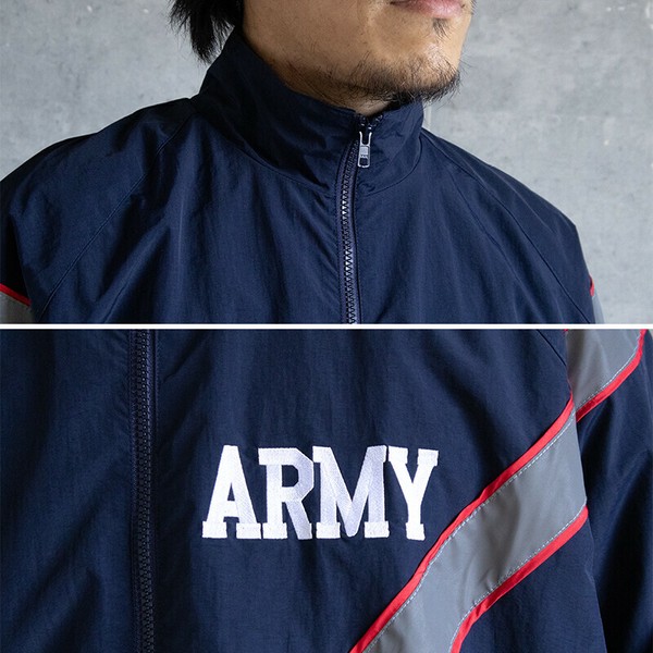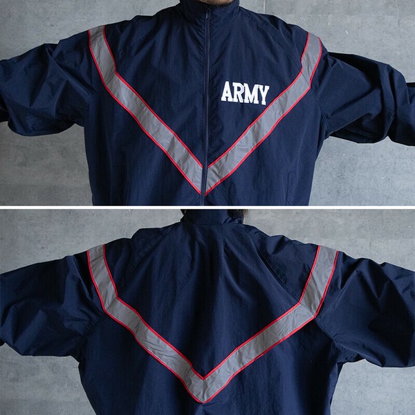 The IPFU (Improved Physical Fitness Uniform) suit is a physical training jacket adopted in the 1990s. It is made of a fabric that dries faster and is more breathable than conventional sweatshirt material. The windproof, water-repellent nylon shell and mesh liner provide excellent breathability. In addition, reflective material is used on the stripes and back to increase nighttime visibility and safety during training. The IPFU suit's distinctive ARMY embroidery, fabric, reflective material, and other features are faithfully reproduced from the real thing. |