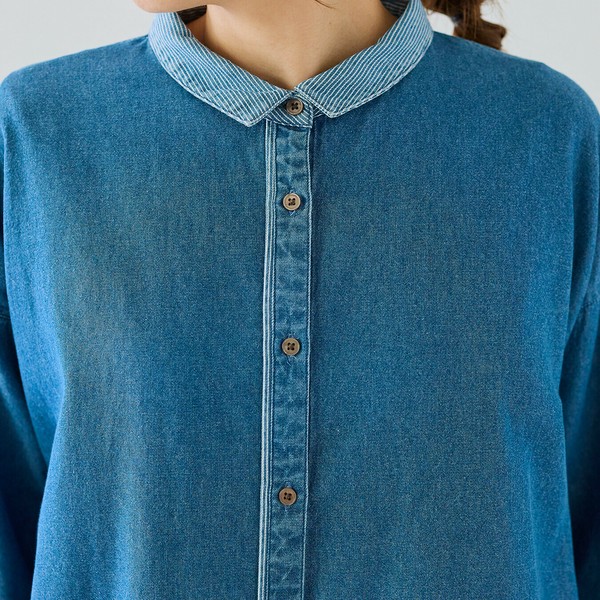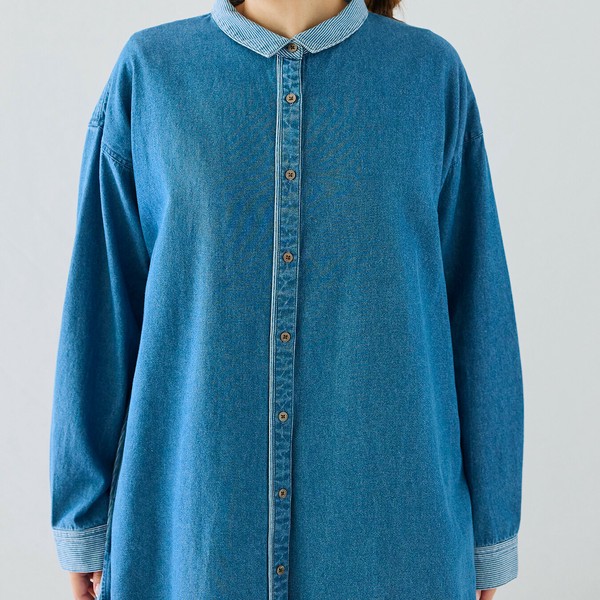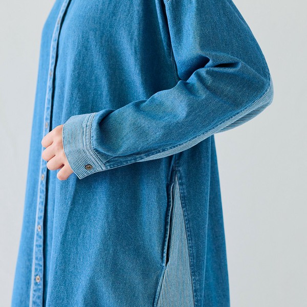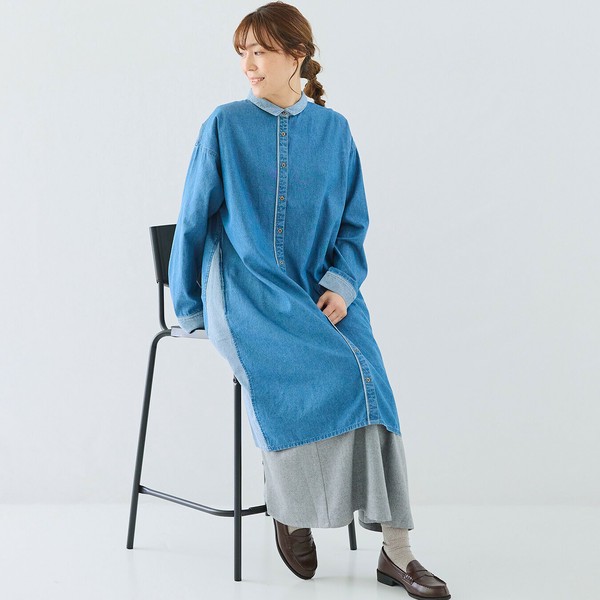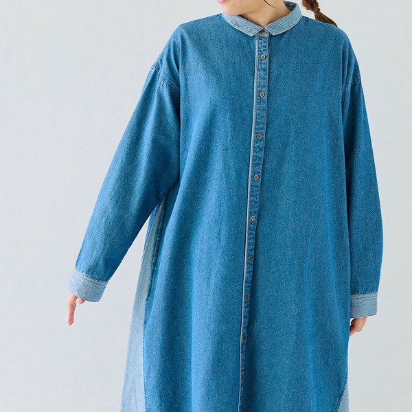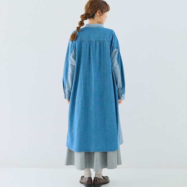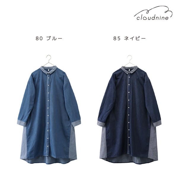#cloudnine #cloudnine #nonno #denim dress #front opening one-piece #biowash #natural clothes #autumn dress #for woven #different material switching