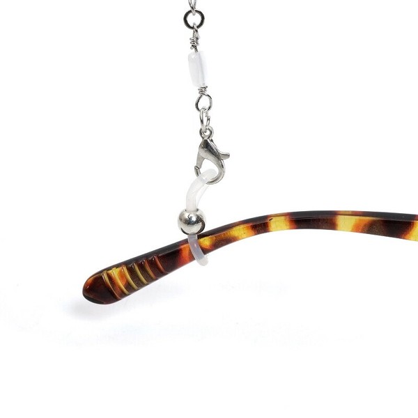 2種類のビーズが交互に並んだ、シンプルながらもそれぞれビーズの形や並びが異なる洗練されたデザイン。首周りはチェーンのみなので、髪の毛に引っかかりにくいのも嬉しいポイント。長めのピアスをつけているかのように、ビーズが耳元で揺らめきます。首にかけたままにできるので落下や紛失の防止や、何度もメガネをかけ外しする際置き場所に困らない便利なアイテム。