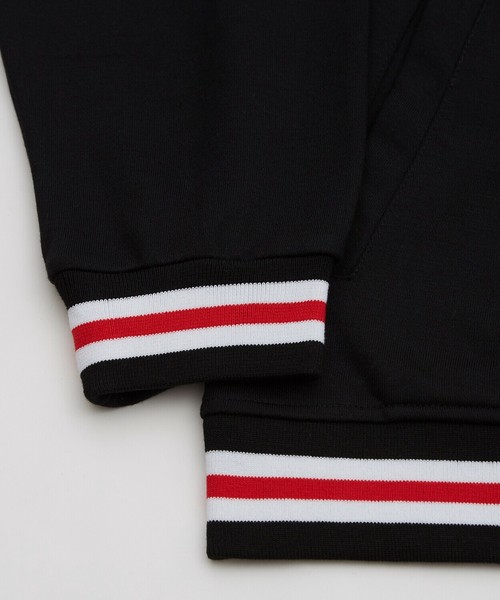 ●しっかりとしたスナップボタン、赤白ラインのリブデザイン