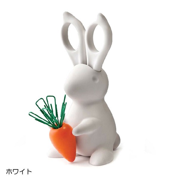 (Desk Bunny Scissors&Clip Holder)ホワイト デスクバニーシザーズ&クリップホルダー(ウサギのはさみ&にんじんマグネット/クリップ)