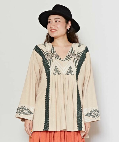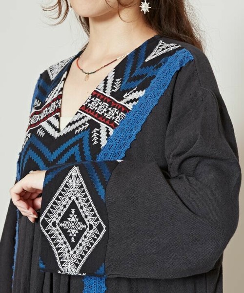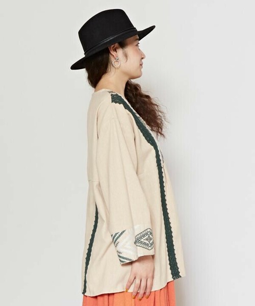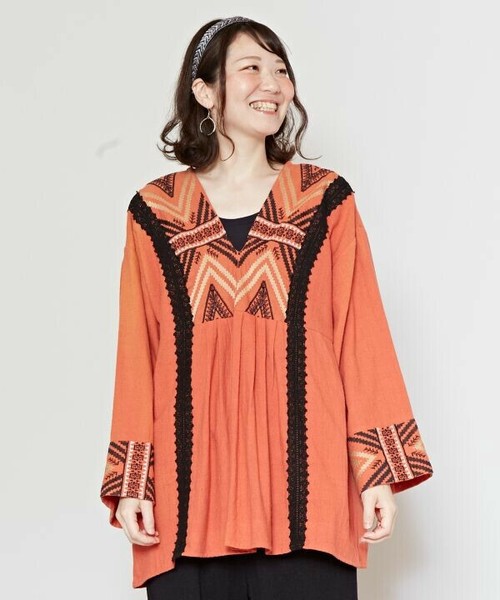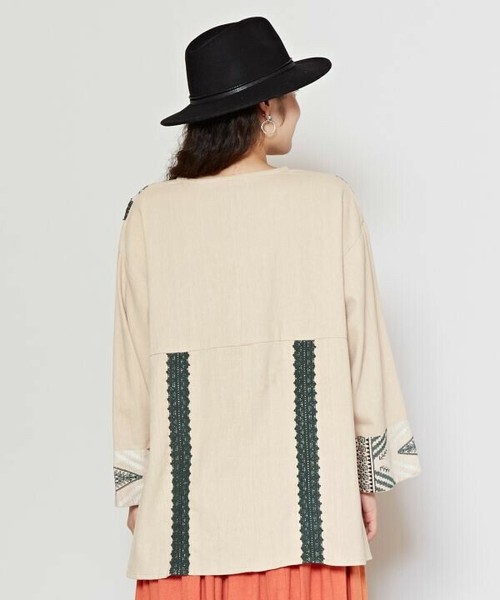 | 这件华丽的上衣采用了醒目的 Ortega 图案刺绣。 蕾丝带的使用也是一大亮点。 印度棉面料具有表面触感,根据穿着方式的不同,可以穿很长时间,比如在寒冷季节搭配高领毛衣。 *因此,形状、颜色、图案等可能略有不同。 Amina Collection Co. |