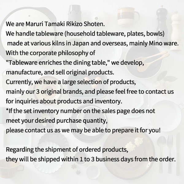 让您在日常餐桌上品尝到凉亭的味道。 迷你烧 [KANADE] 系列 为您的日常餐桌带来些许美味。 Minoyaki [KANADE-KANADE-] 系列是时尚、易用的日式餐具,与您的日常餐桌相得益彰。 首先映入眼帘的是蓝黄相间的颜色,仿佛能吸引你的注意力。 它的表情会随着光线的变化而变化,让您的餐桌看起来更加华丽。 另一个魅力是陶瓷特有的 "贯入"(渗透)。 使用的次数越多,裂纹的韵味就越深。 它的形状多种多样,非常适合日式、西式、中式以及其他任何料理。 从日常饮食到特殊场合,它们都能用于制作各种菜肴。 它们还可在微波炉中加热。 我们建议将其与生鱼片搭配使用。菜肴的清新色彩会衬托出它的美丽,让您的餐桌更加多姿多彩。 让您仿佛置身于豪华餐厅。 [KANADE 系列将使您的日常用餐更加美味和愉快。 何不为您的餐桌增添一点变化呢? *点击此处查看 KANADE 系列产品清单*。 *点击此处查看日本餐具清单*。 *点击此处查看 Maruri Tamaki Rikizo Shoten 产品列表*。 Maruri Tamaki Rikizou Shoten TAMAKI 碗碟, 碟子, 盘子, 小猪, 餐具, 陶瓷, 时尚, 可爱, 造型可爱, SNS, 北欧, 韩国, 台湾, 简易餐具, 餐具, 器皿 |