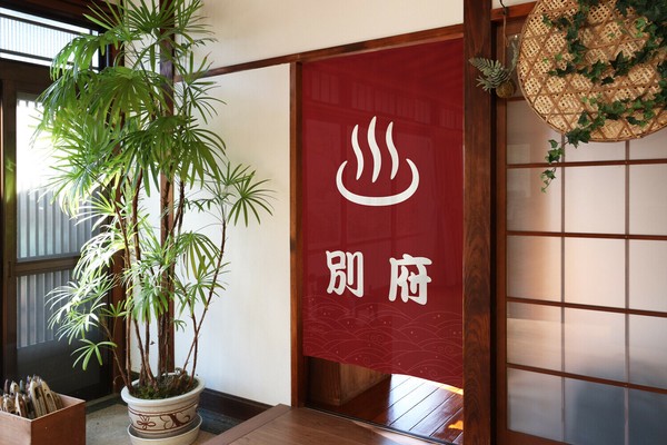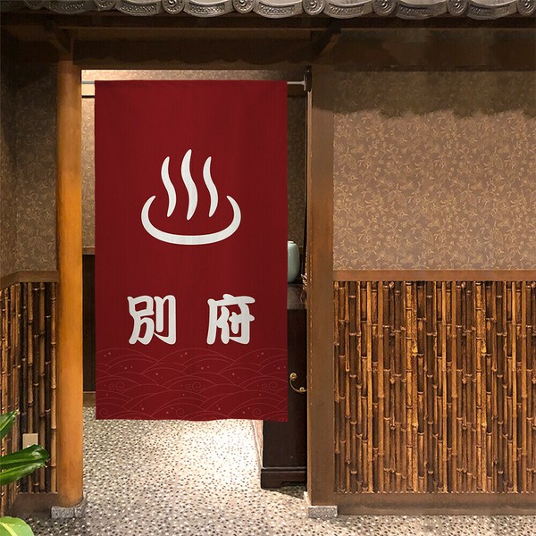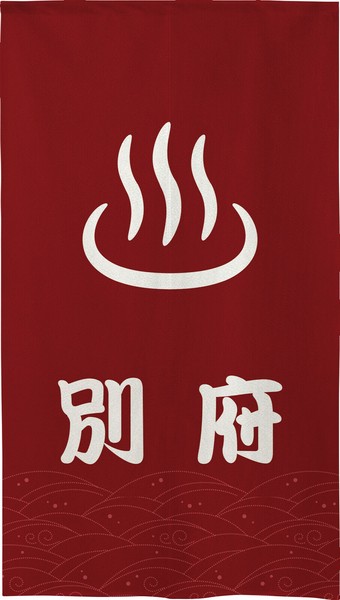のれん_温泉マーク 九州 別府_えんじ_85×150cm