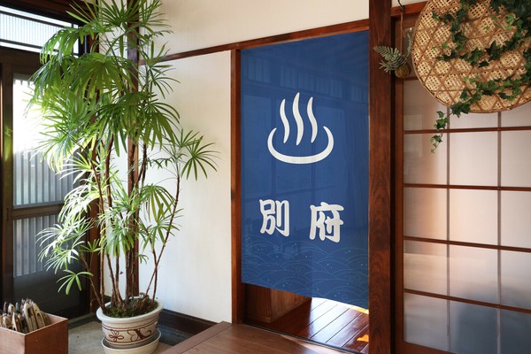 のれん_温泉マーク 九州 別府_紺_85×150cm