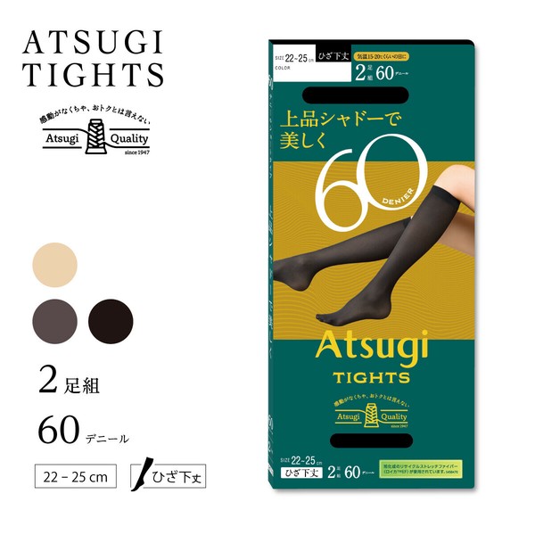 Elegant shadow and beautiful 60 denier, below knee length, 2-pair set