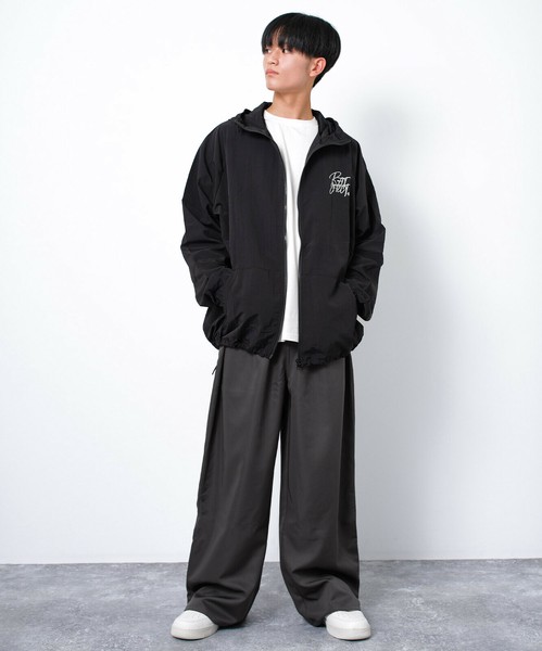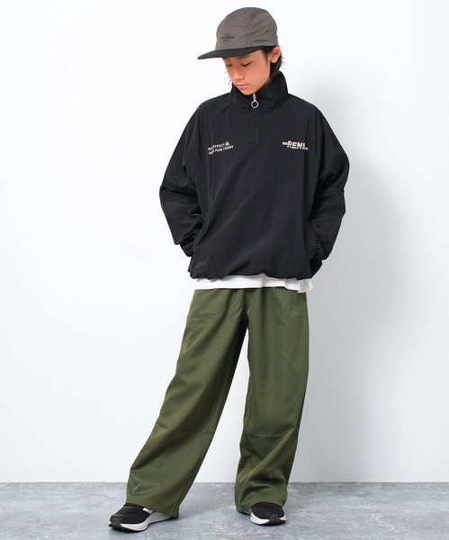 宽大的剪裁使裤子的外形更加结实,打造出街头时尚的造型。