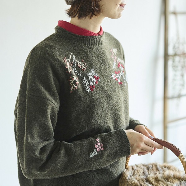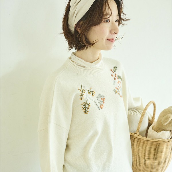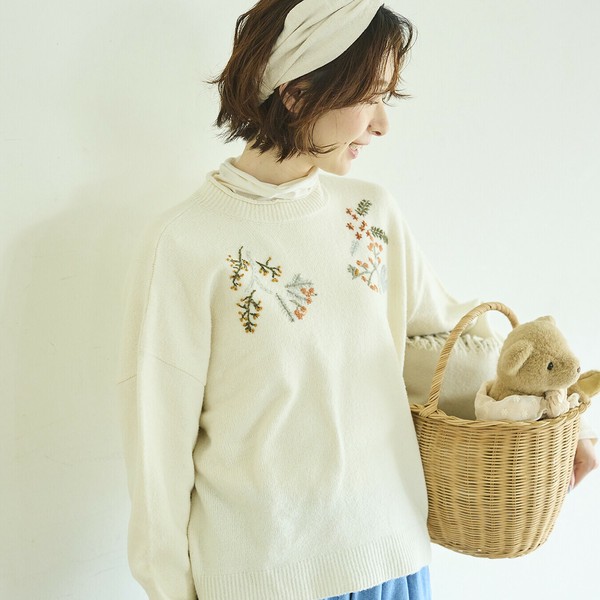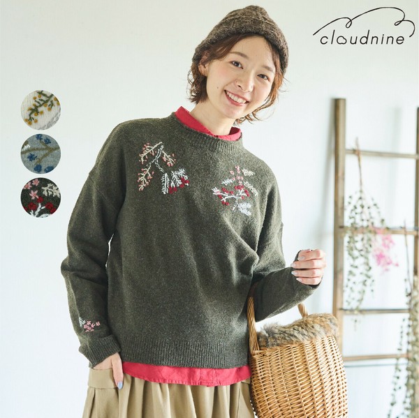 #cloudnine #cloudnine #non-no #embroidery knit #adult cute #autumn/winter tops #feminine coordinate #natural clothes #fluffy knit #light knit