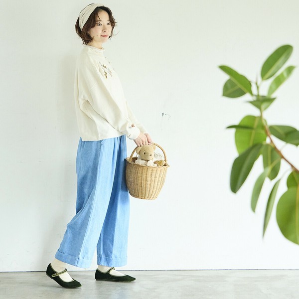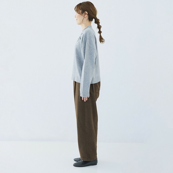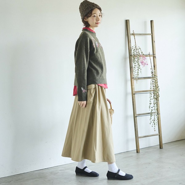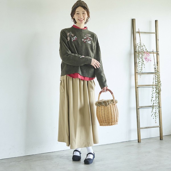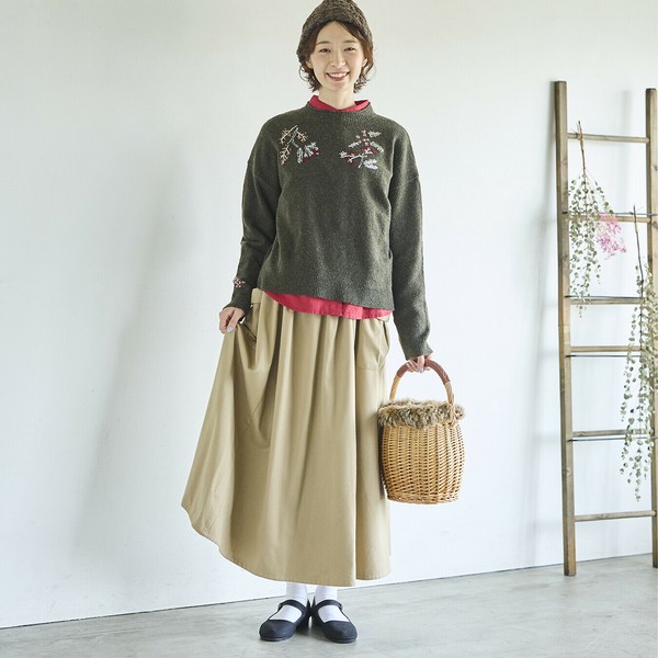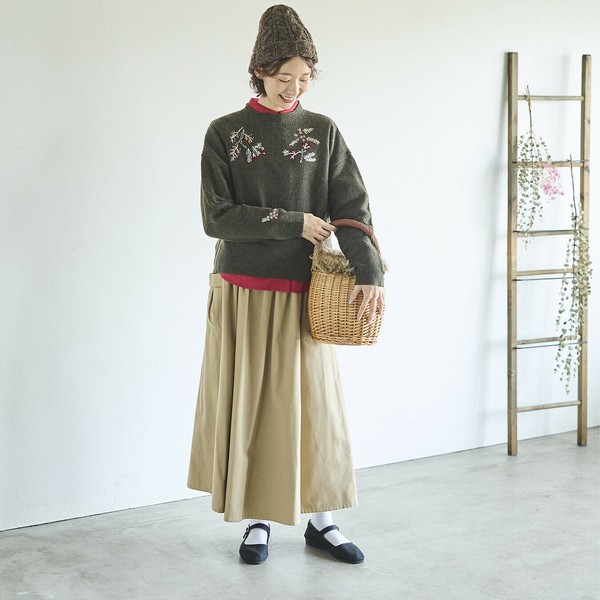 | [柔软蓬松的针织套头衫,胸前的刺绣图案引人注目。] *搭配单品 象牙色(NCS1954)内搭剪裁缝纫(NEZ2050)长裤 灰色(NEZ2014)裤子 卡其色 (NBS1568) 上衣 (NNR1938) 裙子 促销 POP! 畅销品☁ 最新商品☁ *要点 *前襟和右袖袖口精心点缀的多色刺绣让这款单品光是穿上身就华丽无比。 *宽松的版型营造出轻松的氛围。 *只需搭配基本款下装,就能让你的着装更加完美! 适合寒冷季节的**[暖色调]**也很吸引人! **材质 采用再生聚酯纤维针织面料,手感轻盈柔软,厚度适中,为 12G,适合秋冬季节叠穿。 领口、下摆和袖口采用罗纹滚边设计,细节优雅,凸显刺绣的精致而不显粗糙。 *颜色 象牙色、灰色、卡其色 #云霓#Cloudnine#无#刺绣针织#成人可爱#秋冬上衣#女性协调#自然服装#蓬松针织#轻薄针织 模特身高:163 厘米 |