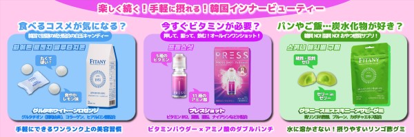 また、「FITANY」シリーズでは、美白成分として注目されるグルタチオンを含んだ舐めるタイプのロゼンジ「ホワイトーンロゼンジ」や、ダイエットに適したグラニースミスアップルサイダービネガーを使用したパウダードリンクなど、簡便で効果的なインナービューティー商品を展開しています。後者は2025年2月からの販売開始が予定されています。