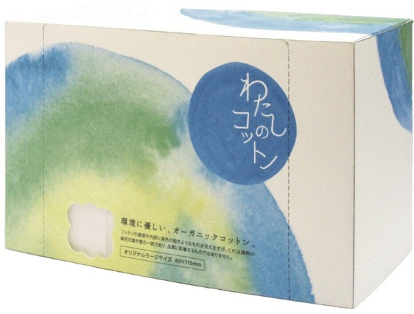 地球に、お肌に、わたしにやさしい100%オーガニックコットン。無漂白の100%OCS有機栽培によるコットンを使用。環境に配慮した再生紙のパッケージ。持ちやすいラージサイズ。 |