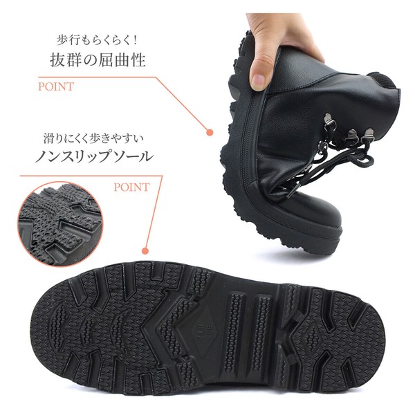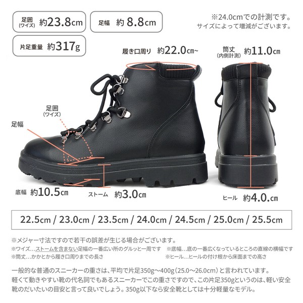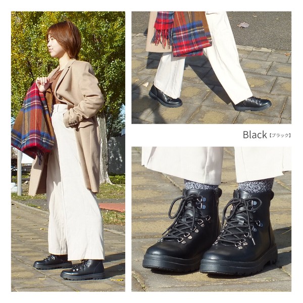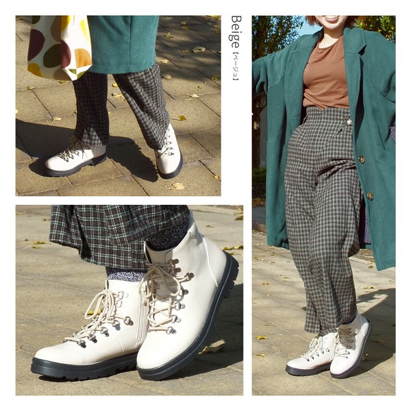 脱ぎ履きラクラクで歩きやすいレースアップショートブーツ。どんなスタイルにも合わせやすい定番デザインのレースアップカジュアルブーツ。 カッコよくも可愛くも合わせられる重厚感のある秋のショートブーツ。 接地面から4cm4時間耐久の防水設計で雨の日も安心です。 3Eの幅広設計でゆったり楽々ストレスフリーな履き心地♪ インソールは取り外し可能のカップインソールでお手入れも簡単でいつでも清潔に保てます。 内側にサイドファスナー付きで脱ぎ履きしやすく、編み上げデザインでお好みのホールド感に調節可能。 屈曲性・防滑性能に優れたアウトソールでガンガン歩けて軽登山にもぴったり♪タウンユースにはもちろんアウトドアシーンでも大活躍! |