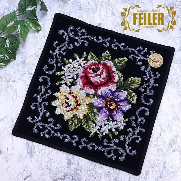 FEILER フェイラー タオルハンカチ 30cm 花柄 ブラック 限定品