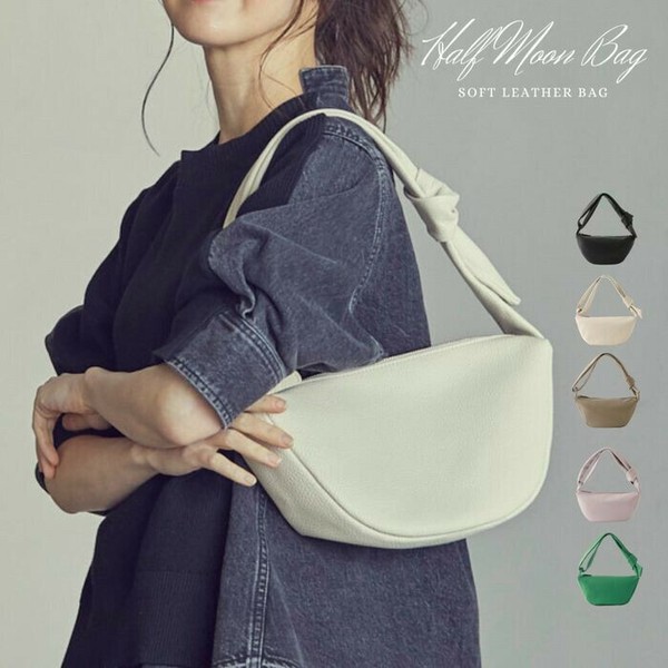 イタリアンレザーの優しい手触りで上品なハーフムーンバッグ。