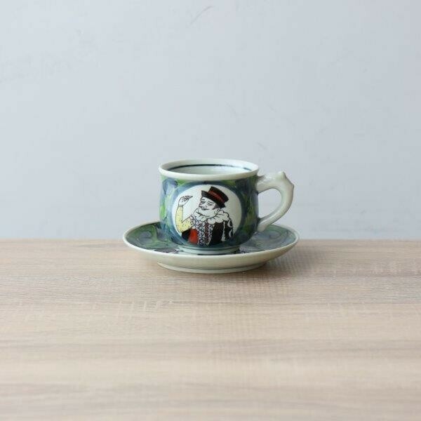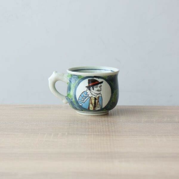 異国情緒あふれる南蛮人シリーズのコーヒーカップ&ソーサー。 素朴で温かみのある風合いが特徴で、ギフトにも喜ばれる逸品です。