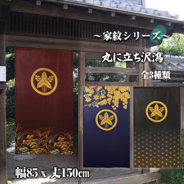 【家紋】と【和柄】を組み合わせたデザインのれん。