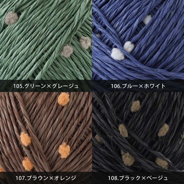 ※こちらの糸は、素材の特性上、玉巻が崩れやすくなっています。そのため、配送時などに多少崩れてしまう場合がございます。あらかじめご了承ください。編み始める際は、糸玉の外側から糸端を取っていただくと、形がくずれにくくスムーズに編み進められます。※染めの特性上、汗や、水濡れ、摩擦により色落ちし、衣類やバッグなどに色が移ることがありますのでご注意ください。※商品写真はできる限り実物の色に近づけるよう心掛けておりますが、お客様のお使いのモニターの設定や環境等により、実際の色味と異なる場合があります。※ロット(LOT)は糸の生産番号です。カラーNoが同じでもロットが違うと若干の色の濃淡が生じる場合があります。※ロット指定でのご注文はお受けできません。ご注文の際には少し多めの量でのご購入をご検討ください。※紡績・撚糸・玉巻加工の製造工程で玉の中に結び目が発生する場合があります。 |