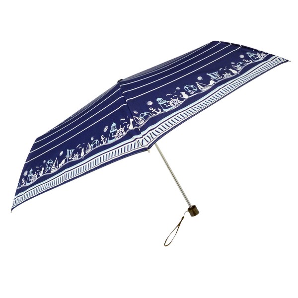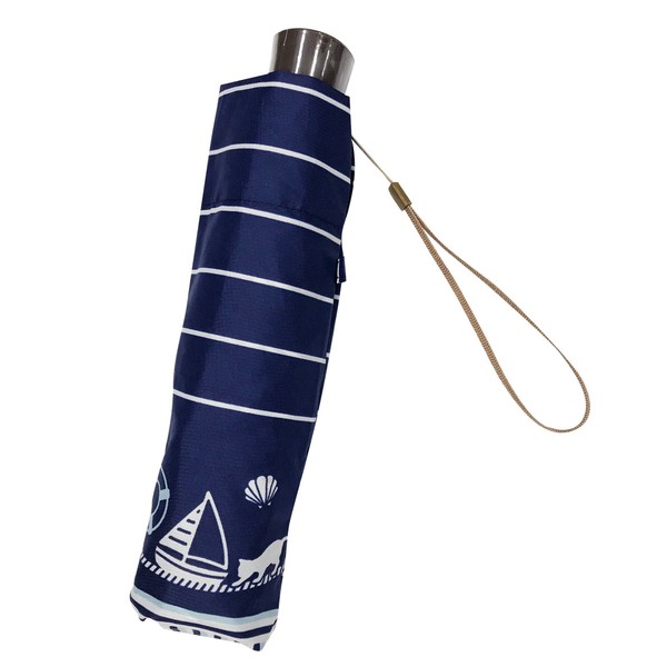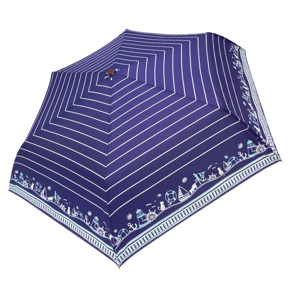 マリンキャット柄がオシャレな折りたたみ傘。 強風で反り返っても元通りに復元する耐風仕様。